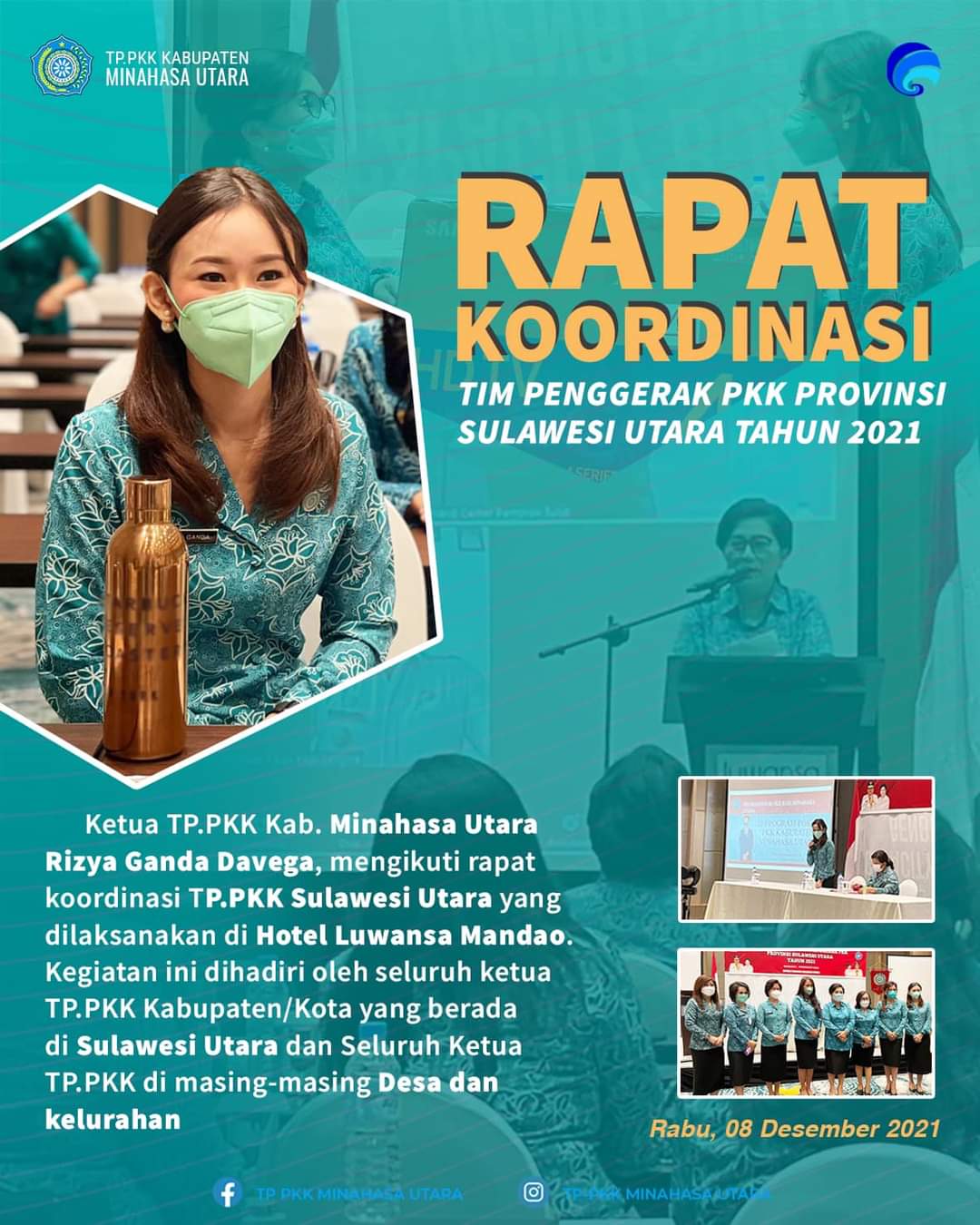 Minut, Swarakawanua.id – Mengikuti Rapat Koordinasi (Rakoor) Tim Penggerak Pemberdayaan Kesejahteraan Keluarga (TP-PKK) Sulawesi Utara (Sulut).
