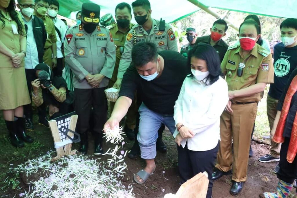 Senin (25/1/22) Bupati dan Wakil Bupati mendapingi Menteri P3A I Gusti Ayu Bintang Darmati berziarah kemakam adik CT di Desa Senduk Kecamaatan Tombariri Minahasa.