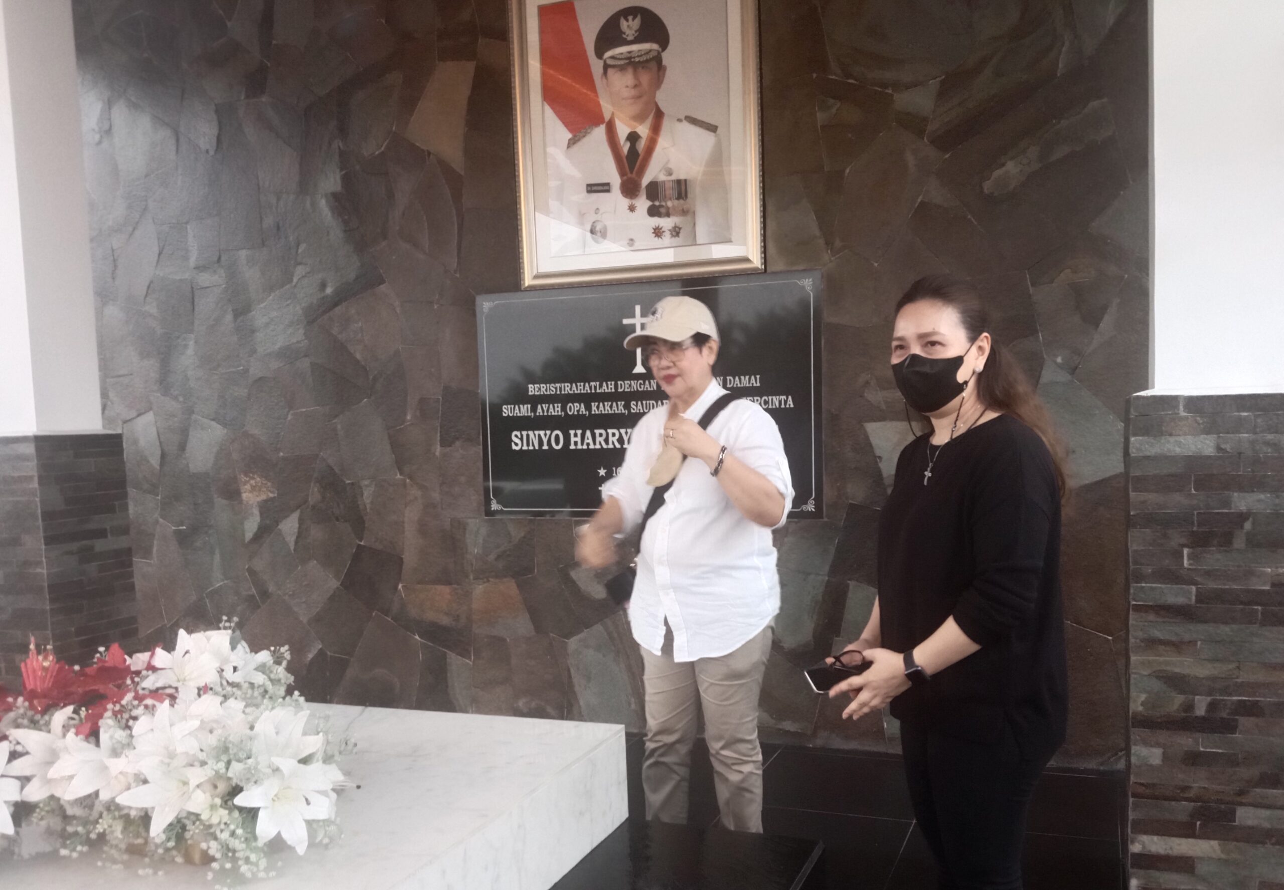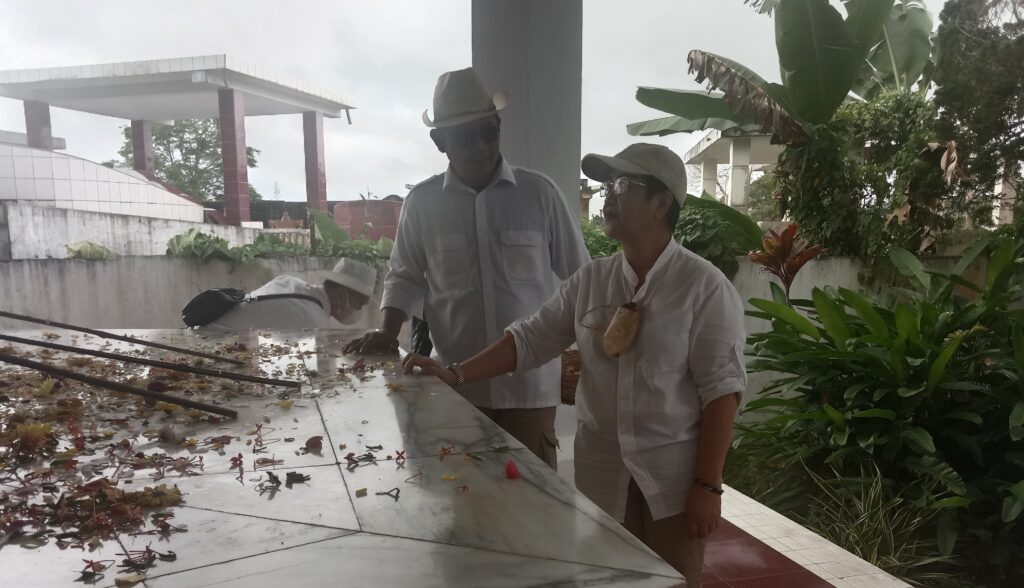 Conny Rumondor Cs melihat makam mantan Gubernur Sulut, Drs. AJ. Sondakh. Penjaga kuburan makam Gubernur Sulut ini menyambut kehadiran rombongan partai Gerindra Sulut dan ziarah berakhir di makam Gubernur Sulut paling paripurna yakni DR. Sinyo Harry Sarundajang (SHS).