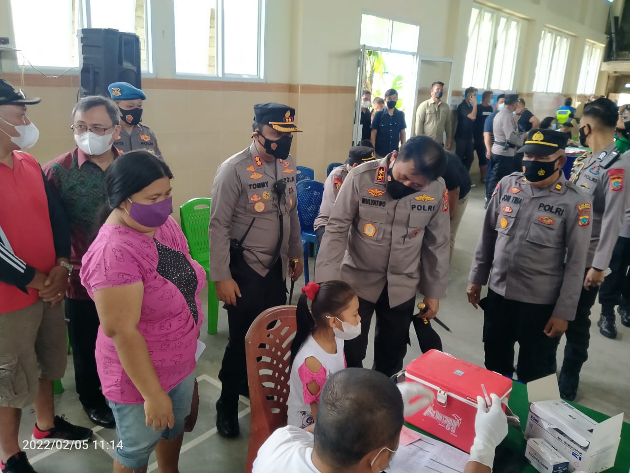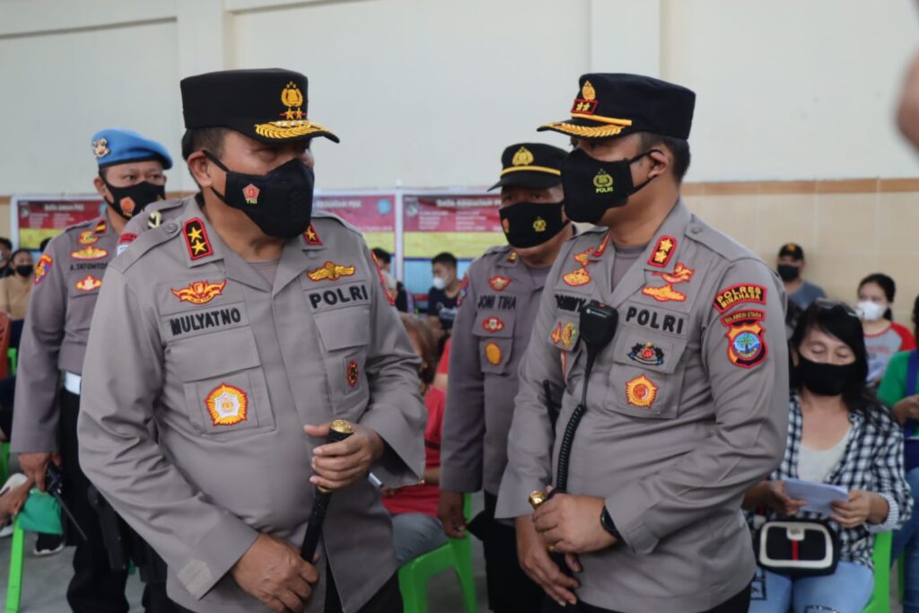 Minahasa swarakawanua.id- Kapolda Sulawesi Utara (Sulut) Irjen Pol Mulyatno, didampingi kapolres Minahasa AKBP Tommy B Souissa SIK meninjau langsung pelaksanaan vaksinasi di wilayah polres Minahasa, Sabtu (5/2/2022)