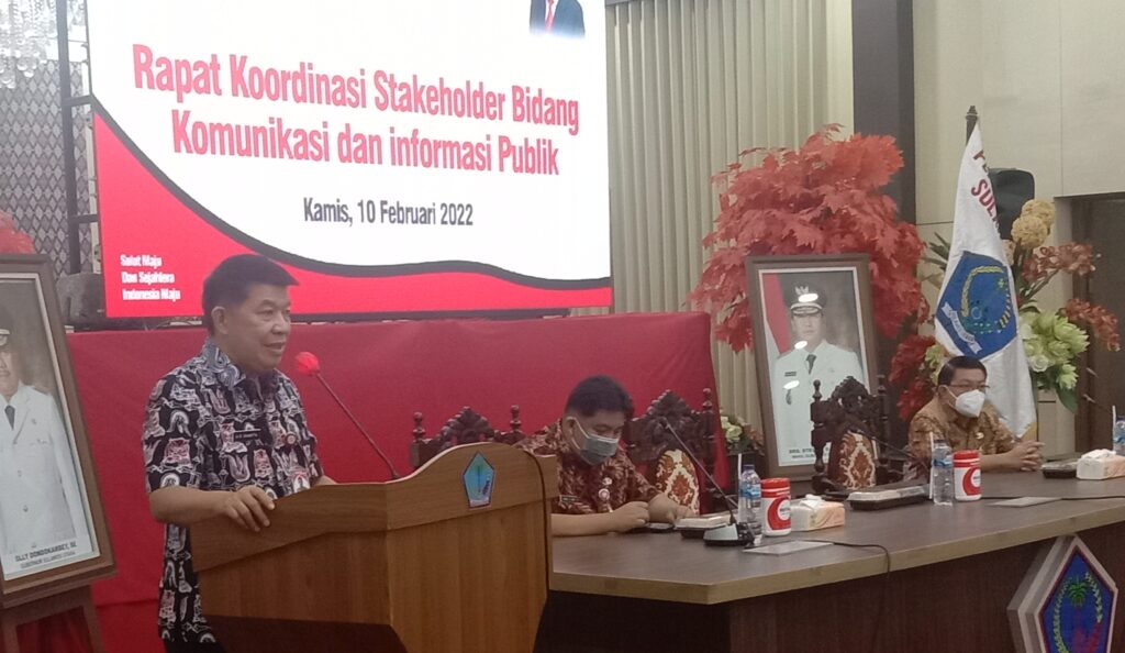 Manado, Swarakawanua.id-Pemerintah Provinsi (Pemprov) Sulawesi Utara (Sulut) Lewat Dinas Komunikasi dan Informatika, Persandian dan Statestik Daerah menggelar Rapat koordinasi (Rakor) dengan tema “Stakeholder Bidang Komunikasi dan Informatika Publik” dalam rangka Digitalisasi Informasi untuk menciptakan keterbukaan akses informasi yang memberikan kemudahan kepada masyarakat dalam memperoleh informasi, Kamis (10/02/2022) bertempat di Ruang CJ Rantung, kantor Gubernur Sulut.