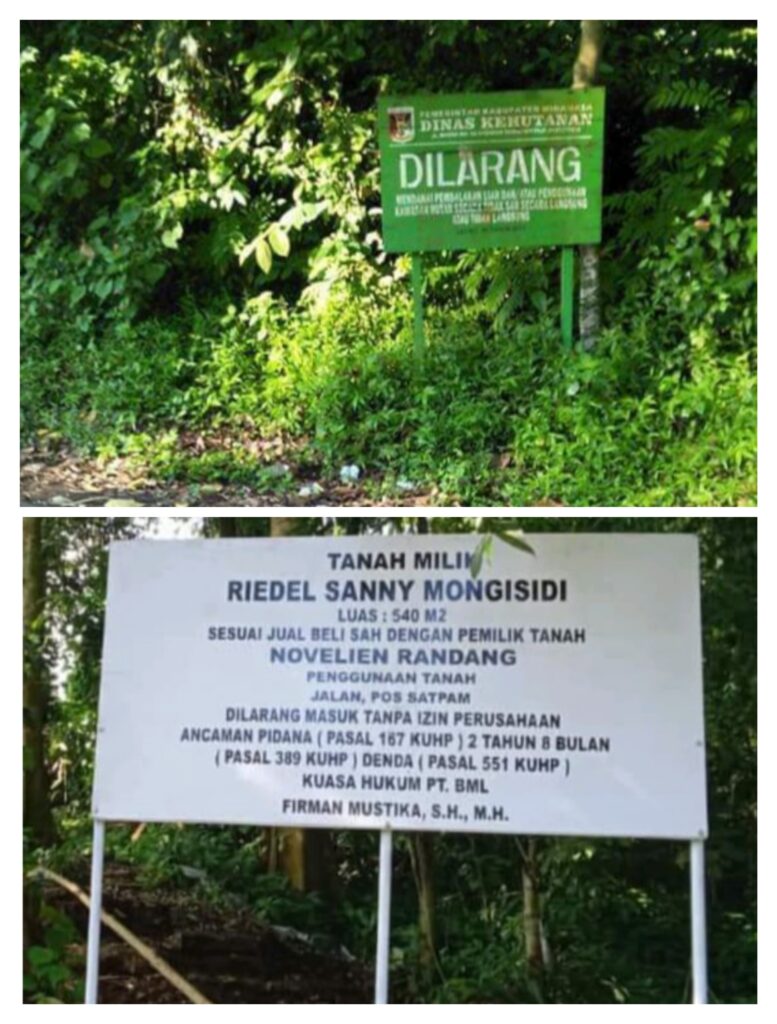 Sebagai tambahan ‘Hutan Mata Air Kolongan’ sebelumnya terpasang papan pemberitahuan dari Dinas Kehutanan namun setelah akan melakukan pembangunan sudah digantikan dengan baliho yang menyatakan tanah tersebut milik Pribadi atas nama Riedel Sanny Mongisidi.