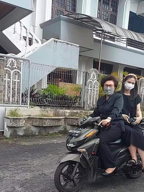 Caption: Pendeta Ritha Dalos MTh Saat Membawa Sepeda Motor Melayani. (*).