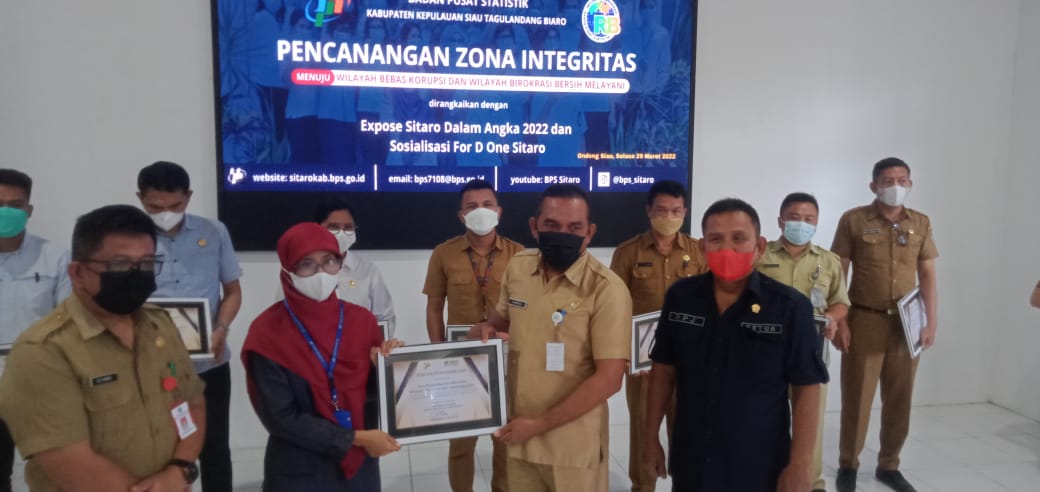 Kepala Badan Pusat Statistik kepulauan Sitaro Irene Listianawati SST, SE,M.Si mengatakan, bahwa pencanangan pembangunan Zona Integritas menuju WBK dan WBBM merupakan tindak lanjut Keputusan Menpan-RB tentang petunjuk Pembangunan Zona Integritas menuju WBK dan WBBM di lingkungan Pemerintah,BPS Serta Instansi Vertikal, Zona Integritas diberikan kepada satuan kerja yang pimpinan dan jajarannya mempunyai niat atau komitmen untuk mewujudkan Wilayah Bebas Korupsi dan Wilayah Birokrasi Bersih dan Melayani.