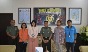 Kedatangan Ibu Vonny Fransiska Pinontoan selaku General Manager (GM) PT Garuda Indonesia Manado, berserta staf disambut langsung Danrem 131/Santiago Brigjen TNI Mukhlis didampingi Kasiter Kasrem 131/Santiago Kolonel Kav Dani Hermawan.