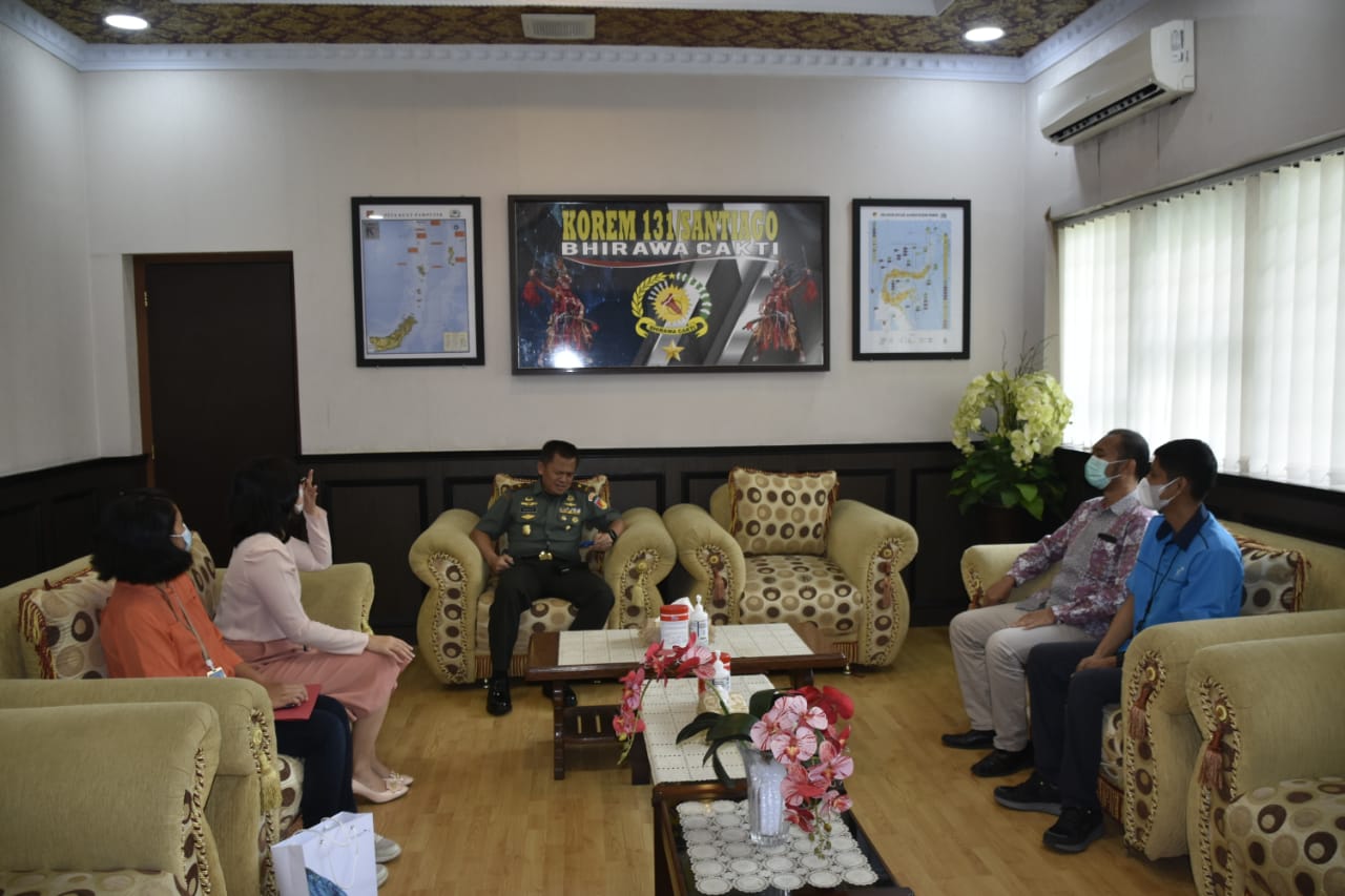 Brigjen TNI Mukhlis dalam kesempatan tersebut menyampaikan selamat datang di Markas Korem kepada Ibu Vonny Fransiska Pinontoan beserta staf disertai ucapan terima kasih yang setinggi tingginya atas kunjungan dari Ibu Vonny Franciska Pinontoan beserta staf yang sudah berkenan meluangkan waktu untuk datang di Markas Korem 131/Santiago.