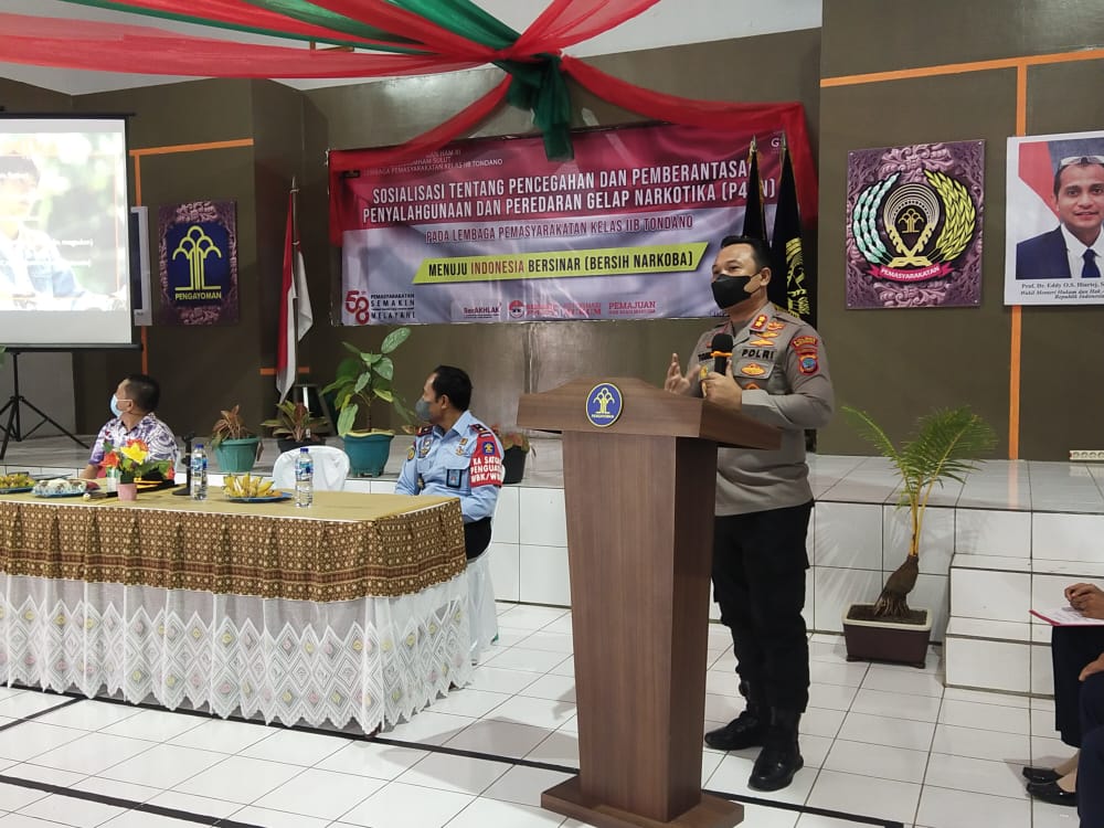 Sambutan dari Kalapas Tondano Margono A.Md.I.P., SH, MH mengatakan, terima kasih kepada pak kapolres yang berkenan hadir, untuk memberikan sosialisasi kepada kita.