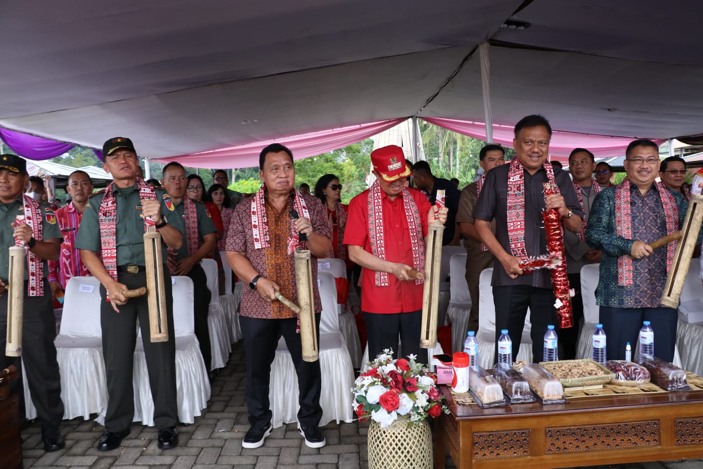 Direktur Infrastruktur Ekonomi Kreatif Kemenparekraf, Haryanto, Forkopimda Sulut, Bupati Minsel, Wakil Bupati Bolmut, Amin Lasena, Forkopimda Minahasa, jajaran pemprov, sekda dan jajaran, mewakili BPMS Joice Sondakh, tokoh agama, masyarakat, dan tamu undangan lainnya. (Echa)