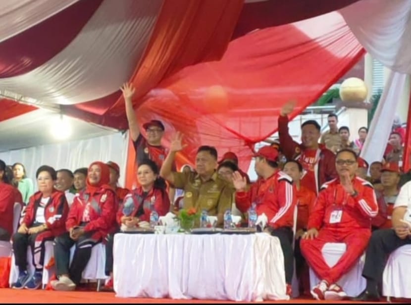 Kebanggaan ini tampak dirasakn oleh Bupati Jouen Ganda, Wakil Bupati Kevin Wiliam Lotulong serta ketua KONI Minut Denny Kamlon Lolong yang duduk dipodium.