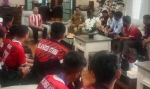 Minut, Swarakawanua.id-Ketua Asprov PSSI Sulut Joune Ganda SE, MAP yang Bupati Minahasa Utara (Minut) menerima tim Sepak Bola Sulut U-17 yang mengikuti Pra Popnas lolos ke tingkat Nasional yang akan dilaksanakan tahun 2023 di Palembang.