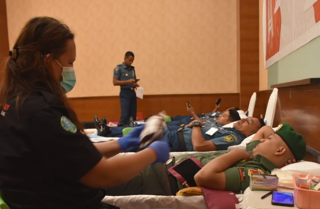 Prajurit Korem 131/Santiago, ikut ambil bagian dalam Kegiatan Blood Donation/Donor Darah diselenggarakan oleh Swiss-bel Hotel Manado bekerja sama dengan Unit Transfusi Darah (UTD) RSUP Prof. dr. R. D. Kandou Manado.