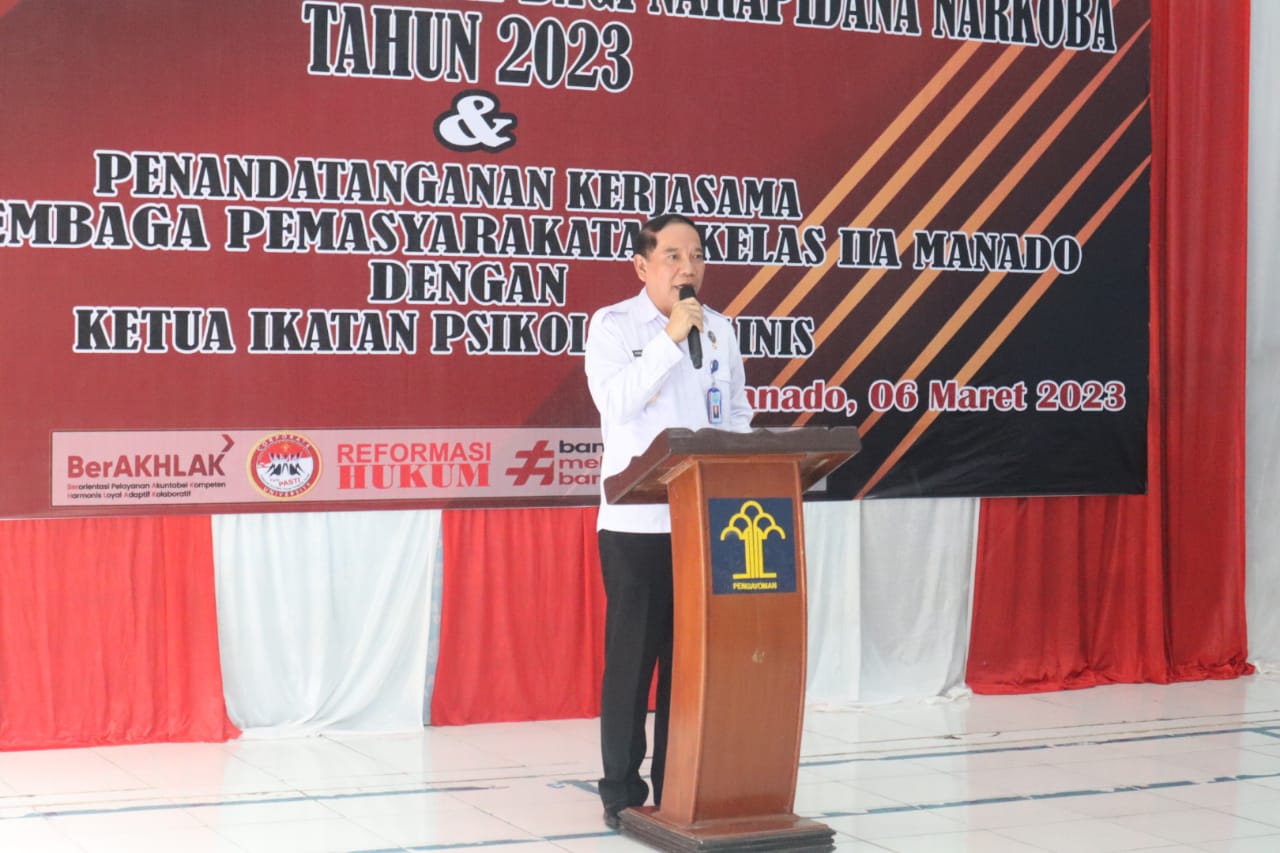 Hal itu dikatakan Kalapas Manado Maruley Simbolon, SH, MH ketika menyampaikan laporan kegitan sekaligus sambutan pada kegiatan pelaksanaan pembukaan program rehabilitasi sosial narapidana narkotika dan penandatanganan Perjanjian Kerja Sama (PKS) antara Lapas Manado dengan Ikatan Psikologis Klinis (IPK) Sulawesi Utara (Sulut), Senin (6/3/23) di Aula Lapas Manado.