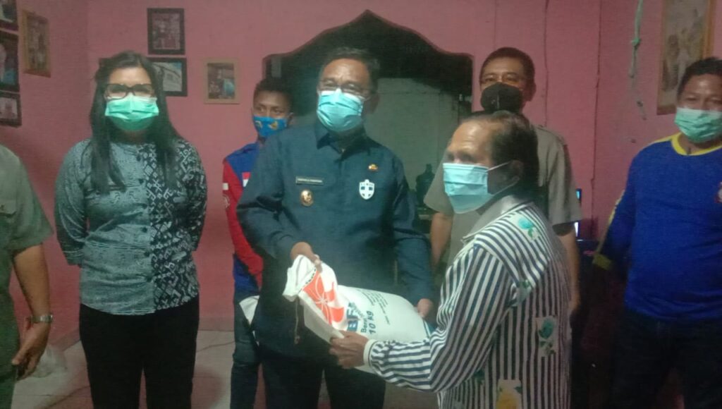 Wakil Bupati Moktar Parapaga kemudian menyerahkan bantuan Sembako berupa beras dan kebutuhan lainnya dari Pemkab Talaud kepada masyarakat yang terkena bencana gempa bumi di daerah tersebut. “Sudah menjadi tanggungjawab pemerintah terhadap korban bencana, oleh karena itu, kehadiran kami akan menambah semangat dan motivasi tersendiri bagi para keluarga pasca gempa,” ungkap Wakil Bupati Kab. Talaud ini.