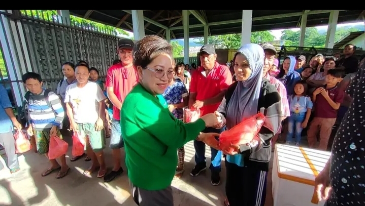 Sangihe,Swarakawanua.id-Merayakan Hari Ulang Tahun Pernikahan ke 32 Tahun, Pj. Bupati Sangihe selaku Keluarga Silangen-Tamuntuan berbagi kasih lewat penyerahan bantuan daging untuk pekerja kebersihan di Tempat Pembuangan Akhir (TPA) Malebur dan kepada para buruh bagasi dan buruh TKBM di pelabuhan Tahuna.
