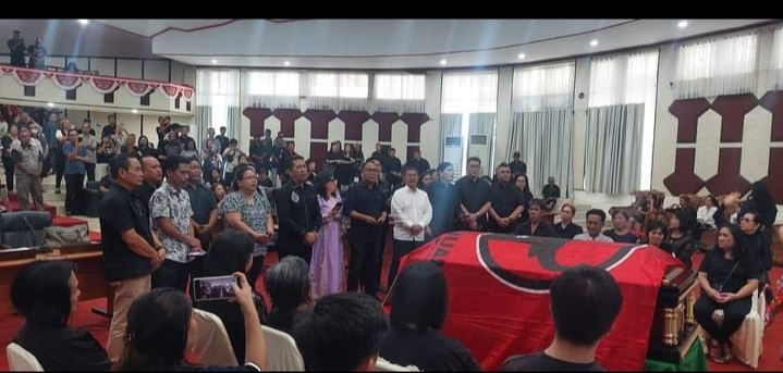 Manado,Swarakawanua.id- Pelepasan jenazah Almarhun Gregorius Tonny Rawung di Kantor DPRD Kota Manado yang dihadiri Keluarga berduka dan seluruh Anggota Dewan DPRD Kota Manado, Sekretaris Dewan, Heri Saptono, dan pejabat yang turut hadir dalam acara pelepasan tersebut.