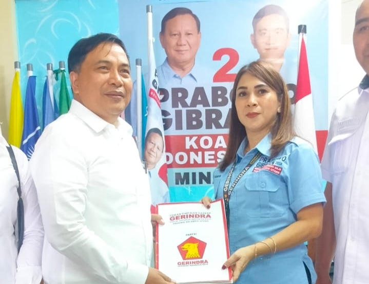 Ketua Badan Pemandangan Pemilu (Bapilu) Gerindra Minahasa, Jerry Mamengko, Ssos didampingi Sekertaris DPC Gerindra, Nova Debora Senduk, Senin (06/05), membenarkan pendaftaran James Karinda.