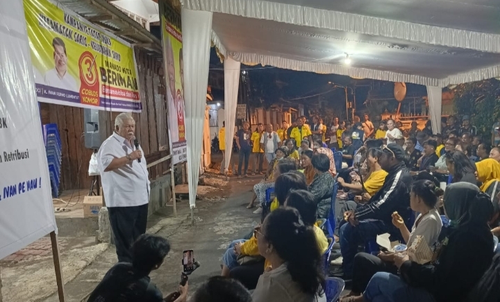 Manado, Swarakawanua. id-Calon Walikota Manado Jimmy Rimba Rogi alias Imba dan Vawali Kristo Ivan Ferno Lumentut (Imba-Ivan) gelar kampanye terbatas di Kecamatan Sario, tepatnya di daerah Kembang.