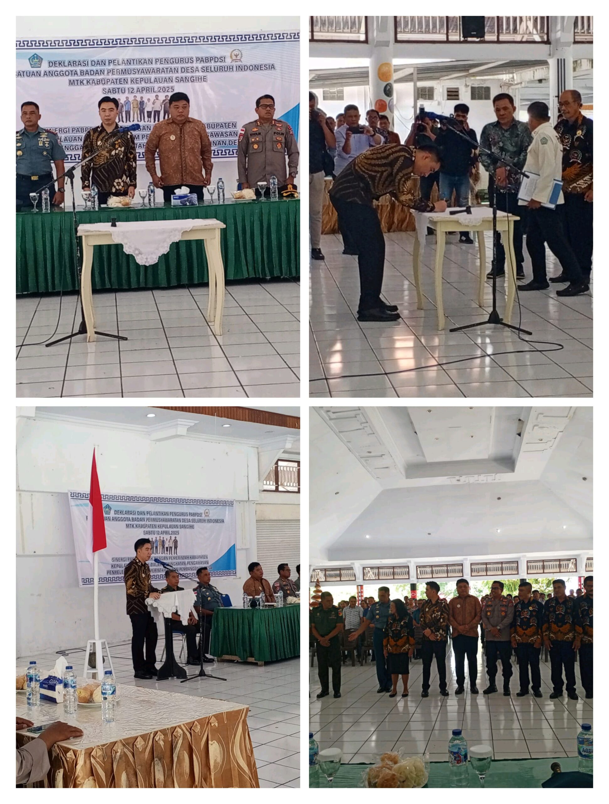 Sangihe, Swarakawanua.id – Bupati Kabupaten Kepulauan Sangihe, Michael Thungari, SE,MM, melantik Pengurus Asosiasi Badan Permusyawaratan Desa Seluruh Indonesia (PABPDSI) MTK Kabupaten Kepulauan Sangihe di Papanuhung Tampunganlawo Sabtu,(12/04/2025).