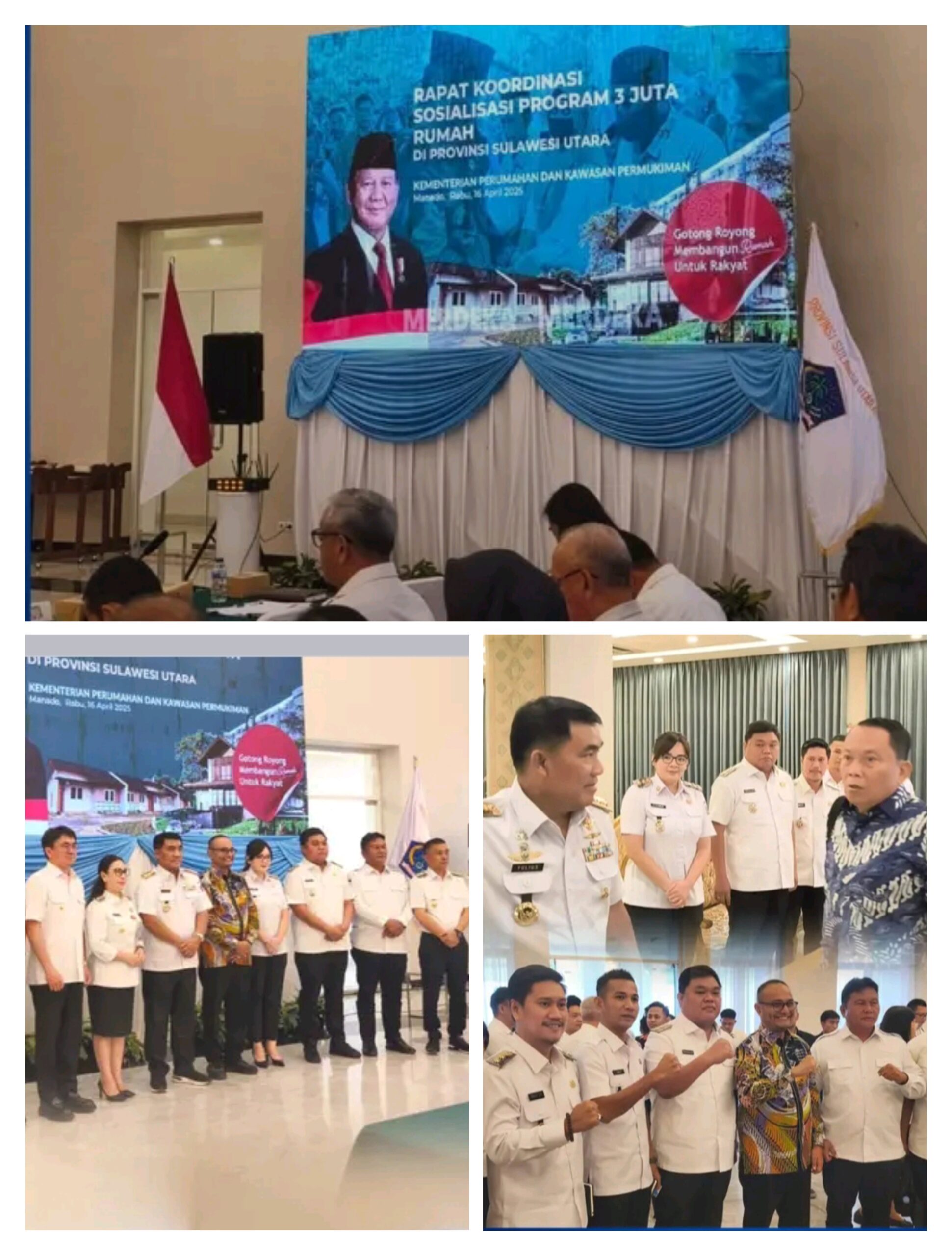 Sangihe,Swarakawanua.id – Wakil Bupati Kepulauan Sangihe Tendris Bulahari Mengikuti Kegiatan Rapat Koordinasi Sosialisasi Program 3 Juta Rumah di Provinsi Sulawesi Utara yang diselenggarakan oleh Kementerian Perumahan dan Kawasan Permukiman RI, bertempat di Wisma Negara Gubernuran Bumi Beringin Manado Rabu, (16/04/2025).