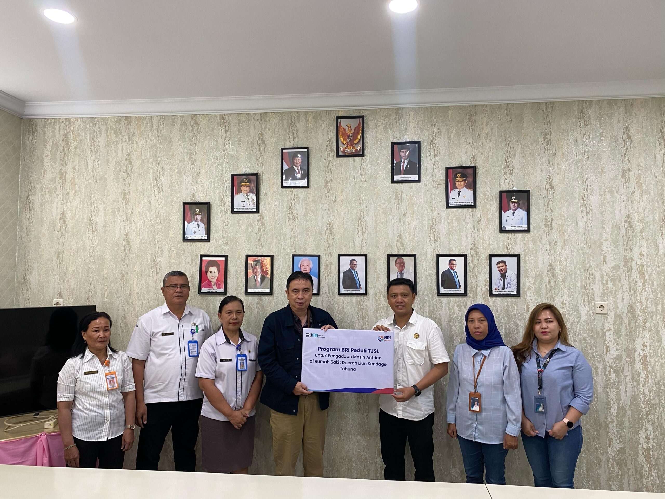 Penyerahan bantuan mesin antrian pasien di serahkan langsung oleh Pemimpin Cabang BRI Tahuna Otting Rajasa dan diterima oleh Direktur Rumah Sakit dr. Aprikonus Loris.