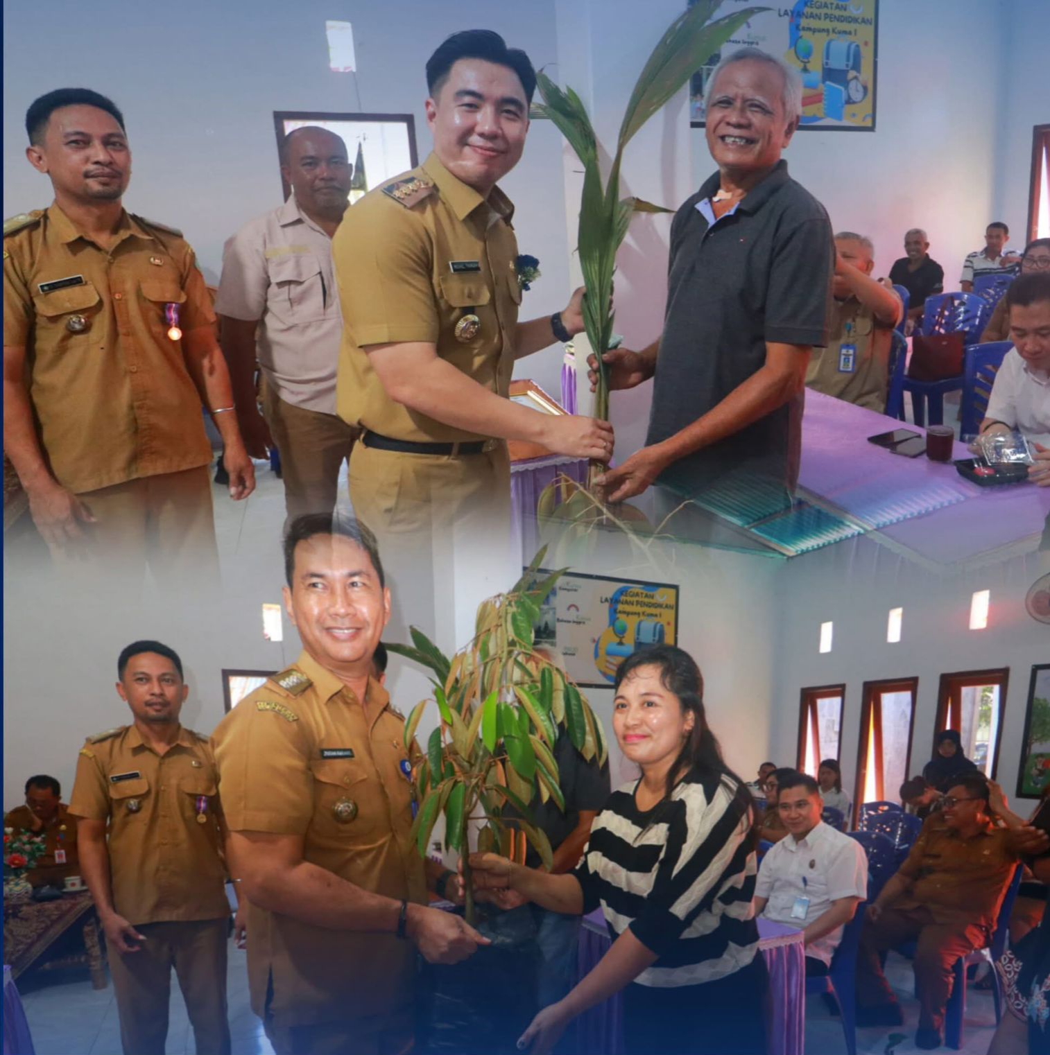 “Bantuan ini dibagi ke warga penerima dengan pembagian untuk bibit kelapa 40 orang, masing-masing menerima 50 pohon. Sementara untuk penerima bibit durian 25 orang dan bibit alpokat 20 orang; jadi tiap penerima menerima masing-masing 2 pohon,” jelasnya.