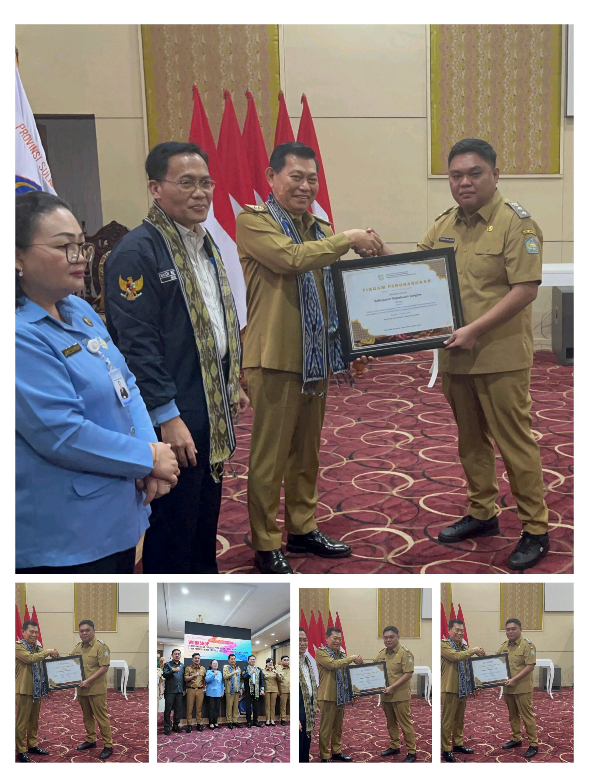 Dalam kesempatan ini, Pemerintah Kabupaten Kepulauan Sangihe menerima piagam penghargaan sebagai Peringkat Terbaik ke-3 dalam Kategori Total Capaian Pelayanan KB Metode Kontrasepsi Jangka Panjang (MKJP) Tertinggi Tingkat Provinsi Sulawesi Utara, atas partisipasi aktif dalam kegiatan Pelayanan KB dan Kesehatan Reproduksi Serentak di Pasar Tradisional.
