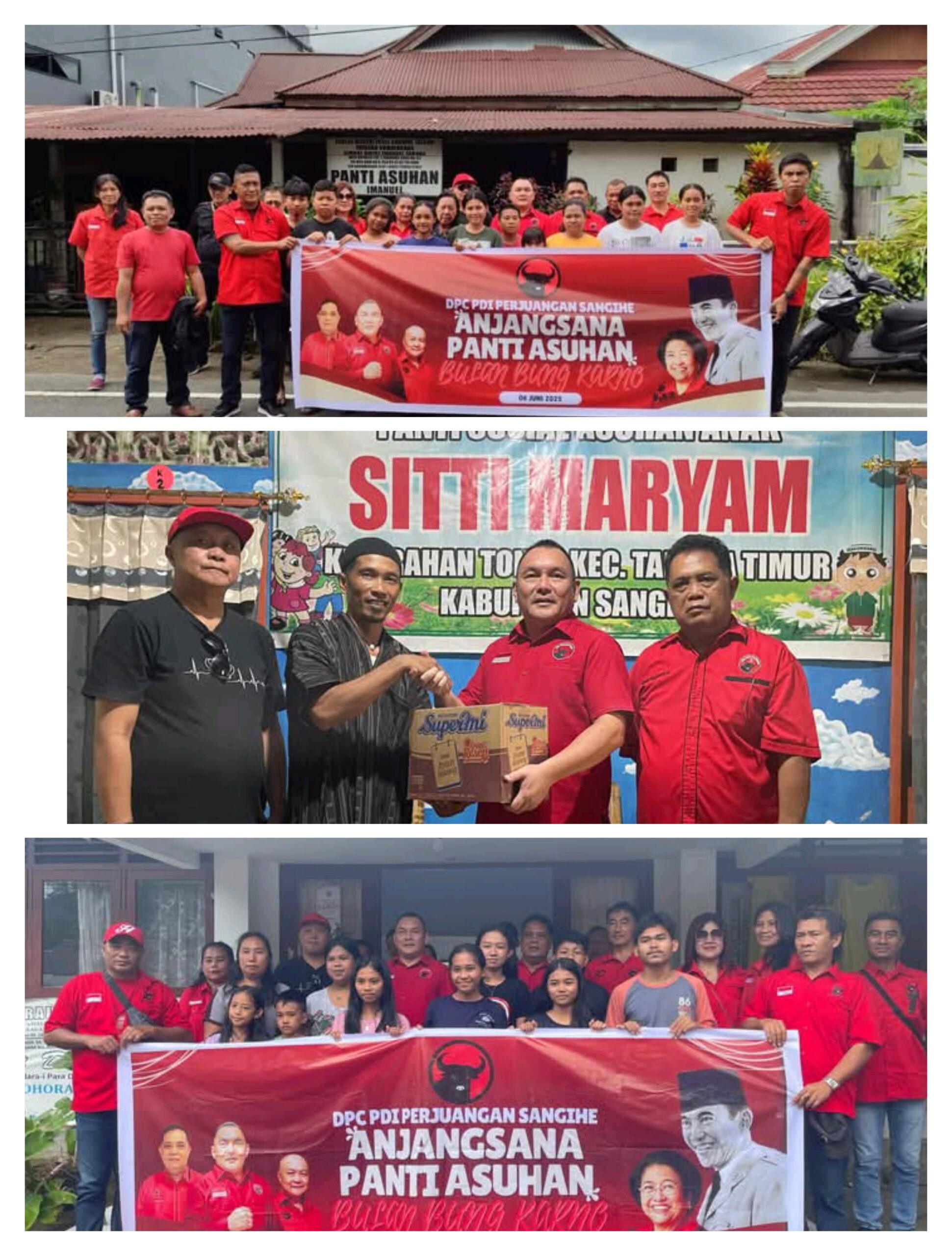 Sangihe, Swarakawanua.id- Dalam rangka memperingati Bulan Bung Karno pada Juni 2025, DPC PDI Perjuangan Kepulauan Sangihe melaksanakan kegiatan anjangsana ke beberapa panti asuhan di wilayah Kabupaten Kepulauan Sangihe.