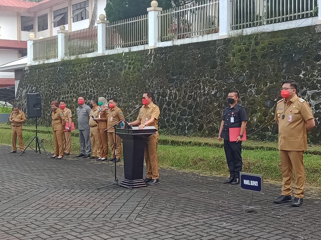 Caption Foto: Bupati Joune Ganda Saat Membawa Sambutan Dalam Apel Kerja Perdana bulan Maret