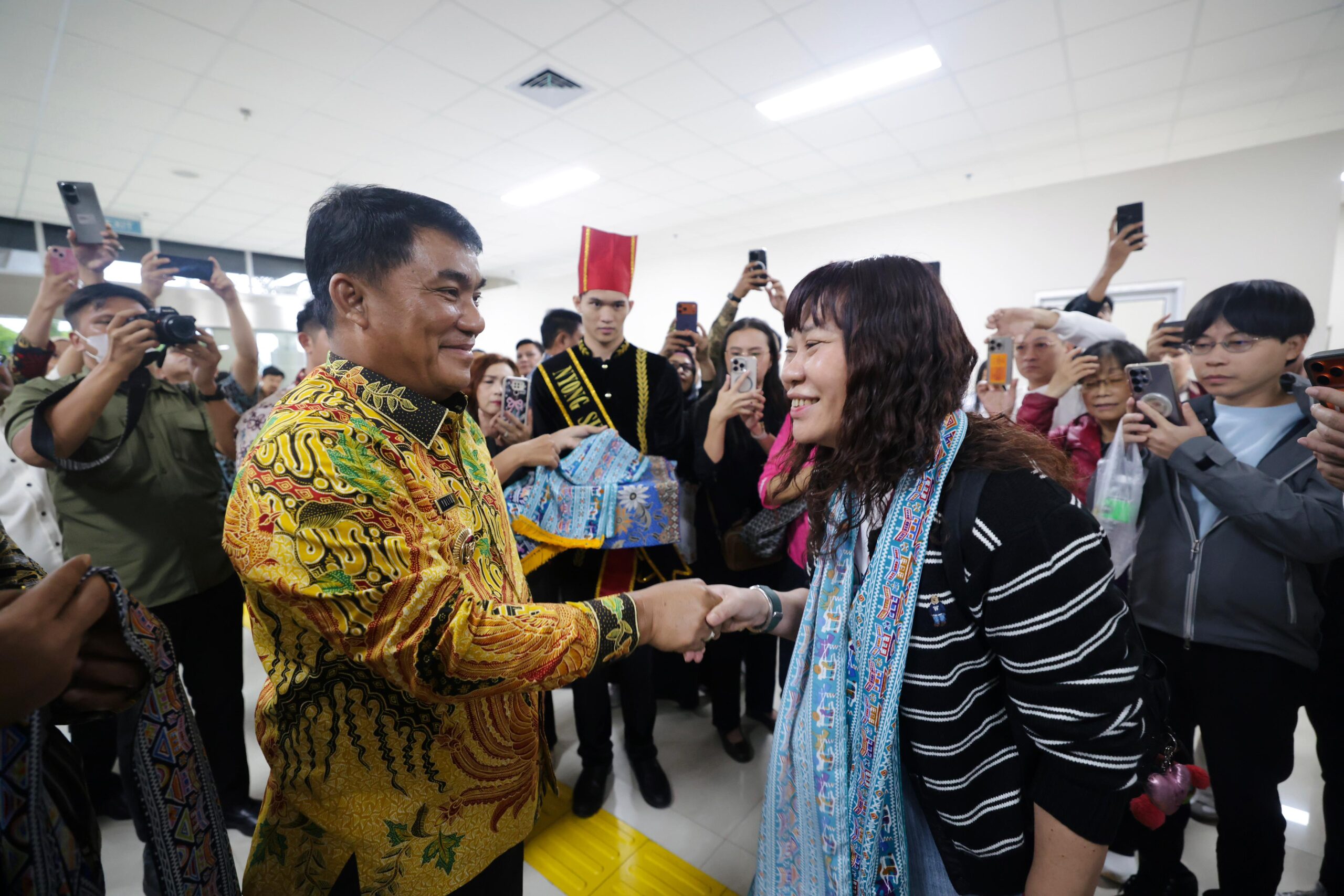 Sebanyak 134 penumpang wisatawan dari Taiwan dijemput langsung Gubernur Sulawesi Utara (Sulut) Mayjen TNI (Purn) Yulius Selvanus SE. Internasional Sam Ratulangi, Sabtu (14/2/2026).