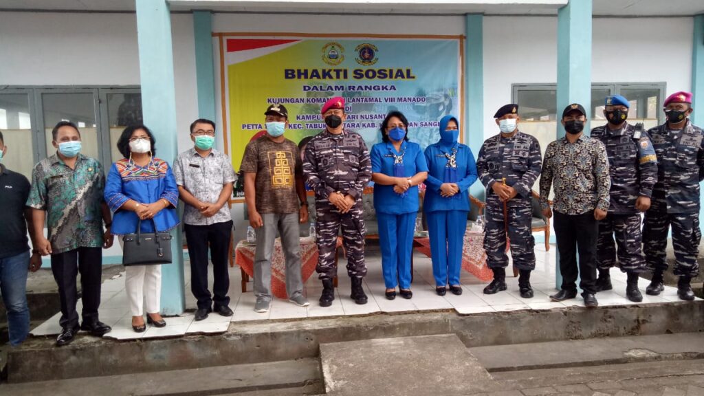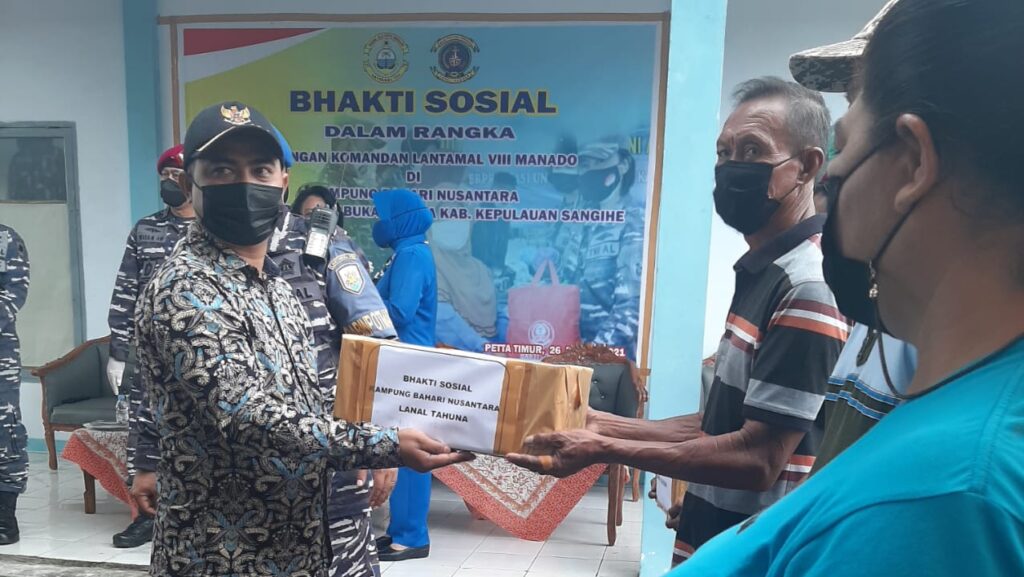 Sangihe,Swarakawanua.id – Kunjungi kabupaten Sangihe, Danlantamal VIII Manado Brigjen TNI (Mar) I Wayan Ariwijawa ikut menyerahkan bantuan sembako ke kampung Petta Timur dan Rendingan yang terdampak Covid 19. Berbagai kegiatan selama di Sangihe sudah dilaksanakan termasuk Bakti Sosial dalam bentuk sembako untuk meringankan beban warga dimasa pandemi.