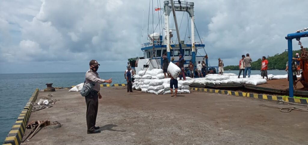 Sangihe,Swarakawanua.id-Babinkamtibmas kampung Petta Timur (Pettim), Bripka Wahyudi Mandola sambangi warga yang berprofesi sebagai buruh bongkar pelabuhan dan mensosialisasikan protokol kesehatan Covid 19.