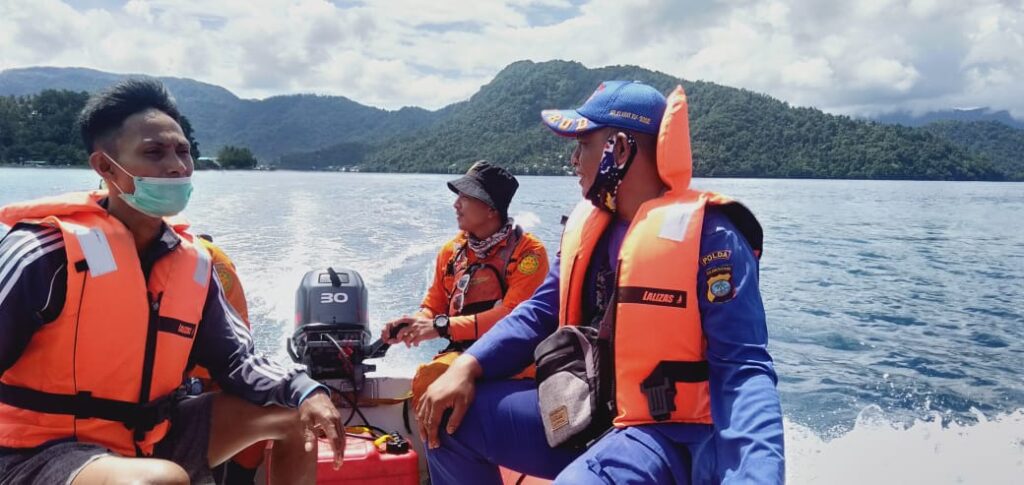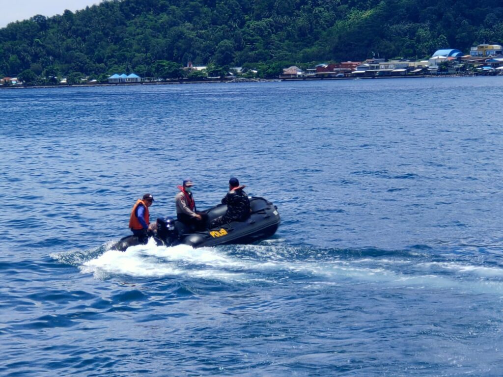CAPTION FOTO: Tim Gabungan Melakukan Pencairan di Perairan Manganitu Sampai Tamako, Tapi Belum Juga Ditemukan. (*).