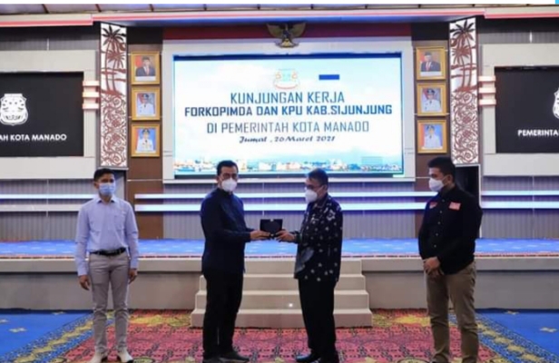 Kunker Forum Koordinasi Pimpinan Daerah Kabupaten Sijunjung di Pemerintah Kota Manado bertujuan untuk studi komperatif evaluasi dan pelaporan tahapan penyelenggaraan Pemilihan Umun tahun 2020.