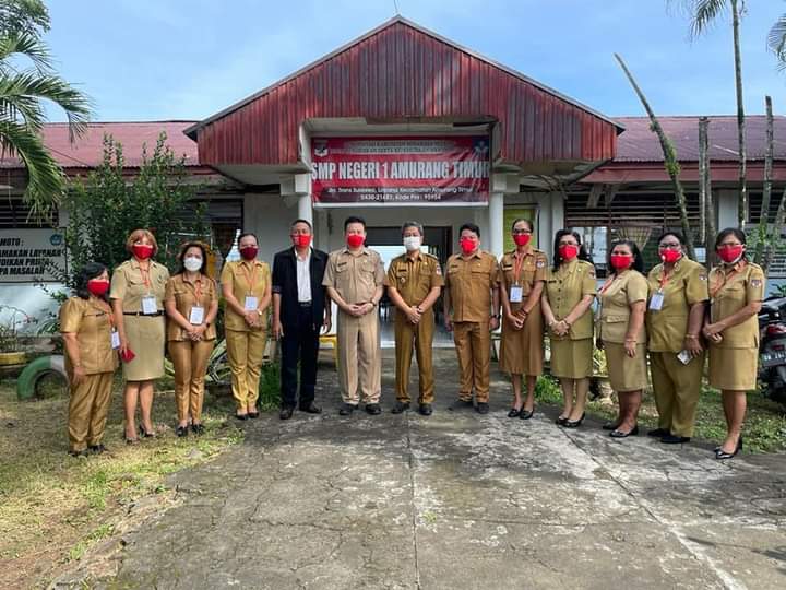 Kepala sekolah SMP N 1 Amurang Timur Virna W Johanis Spd didampingi para guru bersama ketua komite sekolah Jotje Mogigir SH menyambut kedatangan rombongan Wakil Bupati dan bersama sama melakukan pemantauan pelaksanaan ujian akhir sekolah .